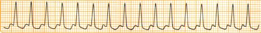 Impulses originate in an atrial pacemaker at a rate 140-250/min. Atrial activity may be represented by upright P in L2 or by P superimposed on T or ST segment of the preceding beat. At very rapid rates only every second P may be followed by QRS (2:1 AV block) with the resulting ventricular rate half the atrial. QRS usually less than 0.11 sec; wide and bizarre QRS mat be due to preexisting BBB or WPWS or due to aberrancy common at rapid rates. Onset and termination of AT is often abrupt. Vagal stimulation frequently terminates AT.